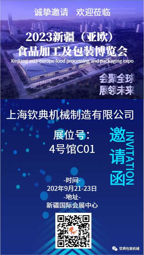 上海欽典機(jī)械制造有限公司欽典機(jī)械2023年新疆亞歐食品加工及包裝博覽會